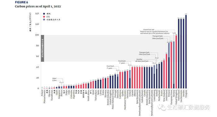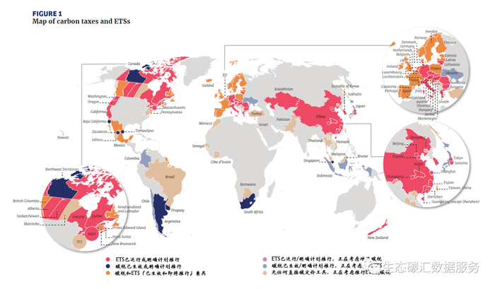 图1:碳定价工具的全球分布(截至2022年4月)