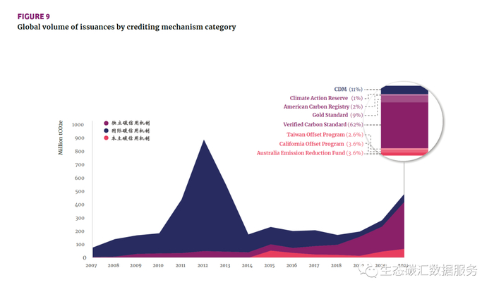图5:2007年至2021年全球碳信用机制核发情况