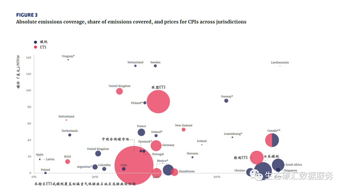 图2:报告期内碳市场/碳税覆盖规模与碳市场价格对比