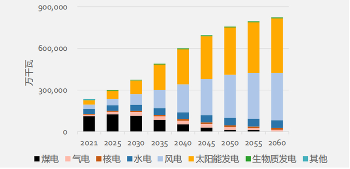 预计到2035年,可再生能源发电份额将达到50%以上;此后,随着煤电加速退役,到2060年,可再生能源发电份额将进一步上升到发电量的90%以上。