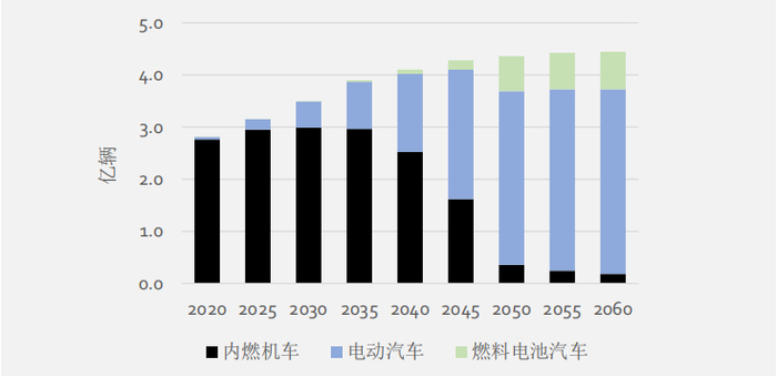 在交通领域,2035年后碳排放量将开始下降。电动汽车保有量快速增长,到2060年乘用车几乎全部为电动或氢燃料电池汽车。氢燃料电池汽车的发展主要面向重型商用车和公共汽车。到2030年,铁路电气化率进一步提高到80%以上,到2050年达到100%。生物燃料和电力多元化转换(Power-to-X,PtX)在航空业的大规模利用也将在交通运输业的低碳发展中发挥重要作用。