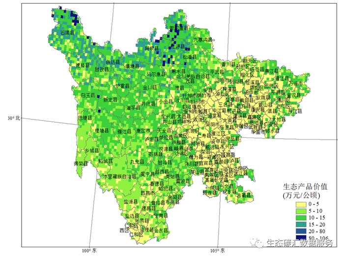 对于生态产品价值的计算,我们采用了统一的算法,没有充分考虑各地的地方特色,而且模型的空间分辨率较粗(10×10公里),对生态产品价值的估算会存在一定的误差。