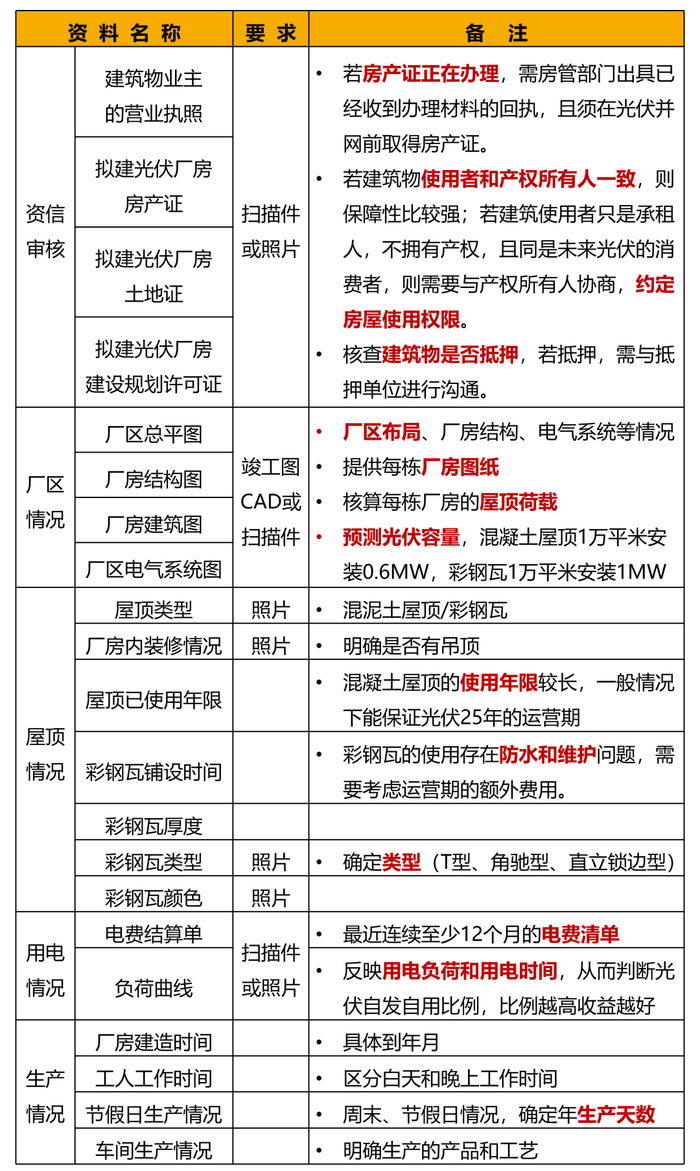项目投资资料 | 屋顶(建筑物)产权证明、业主授权材料(例如 屋顶租赁合同)、售电协议等。 |
