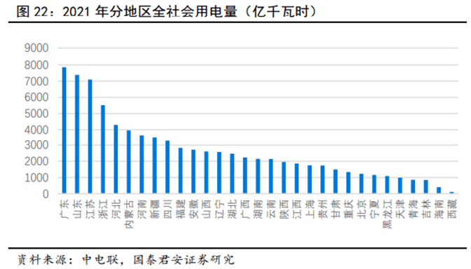 我们可以以广东、江苏、浙江三省第二产业的30%和第三产业的合计用电量,作为峰谷电价差套利的储能市场规模。