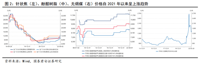 原料价格:过去优质负极材料主要采用进口原料(主要指进口针状焦),2019-2020年原料国产化替代加速,产品成本显著下降。2021年以来,国内负极材料主要原料的价格呈现上涨趋势。下游需求持续增长,供需博弈下原料价格的上涨已成定局,负极材料厂商成本承压,而压力能否传导至下游电池厂商,取决企业基于技术壁垒和客户资源所构筑的议价能力。