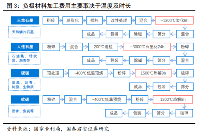 加工费用:无论是软碳还是硬碳,由于其温度和时长要求远远低于人造石墨,成本结构可参考天然石墨,大规模产业化后制造费用(含电费能耗等)可能略高于天然石墨。