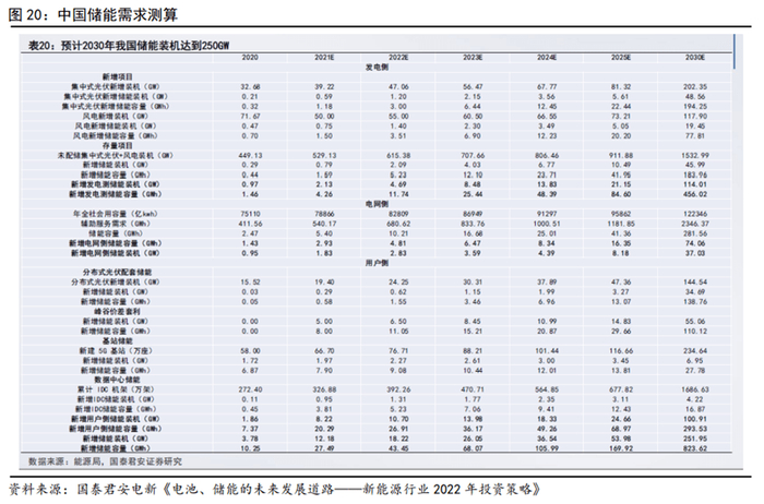 基于碳达峰测算:如果光伏风电发电量占比在2025年达到25-30%的临界上(2020年仅占比5-7%),间歇性能源对于电网的冲击下,储能成为解决电网消纳问题的必然选择。面对2021年国内1.87GW的电化学储能新增装机量来讲,需求增速弹性巨大。
