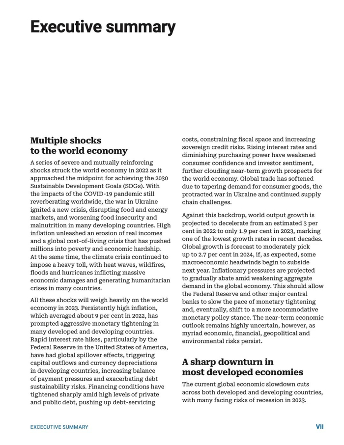 联合国发布《2023 年世界经济形势与展望》报告
