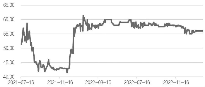 图为全国碳市场碳排放配额(CEA):最新价(单位:元/吨)