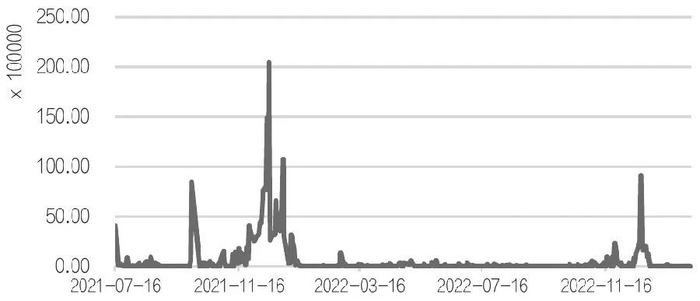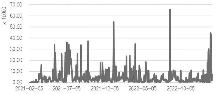 图为全国碳市场碳排放配额(CEA):成交量(单位:吨)