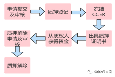 根据2015年5月25日生效的《上海环境能源交易所协助办理CCER质押业务规则》,CCER质押是指在交易所开立交易账户的会员与客户以其持有的CCER为质物,从质权人处获得资金的一种方式。