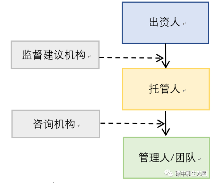 碳基金在运作模式上,体现出显著的特点:多以信托的方式在基金投资者和基金管理公司之间建立起托管人与受益人的关系;管理结构于有限责任公司于股有限公司相似;业务运行通常由基金托管人负责,往往会设立专业的碳基金业务管理团队来具体执行。