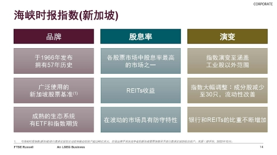 作为世界上历史悠久的指数之一,海峡时报指数(新加坡)在超过56年的过程中不断演变,以保持对新加坡市场的准确反映。虽然在1966年该指数代表发展中的工业经济体,但在今天它更反映了新加坡在亚洲金融和REITs领域中日益突出的地位。这种演变造就了一个由具有防御性、股息支付较高的成分股组成的指数——这些特性有助于在当前的动荡市场环境中最大限度地减少损失。