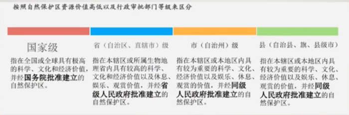 4、 自然保护区分为国家级自然保护区和地方级自然保护区。
