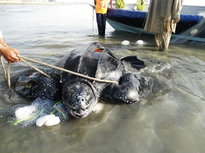 世界自然基金会巴基斯坦分会的海洋渔业技术顾问穆罕默德·穆阿扎姆·汗(Muhammad Moazzam Khan)表示,2012年之前巴基斯坦海域每年大约有2.8万只海龟和1.2万头海豚被渔具缠住。他补充说,几乎所有被困的海豚最终都因窒息而死。