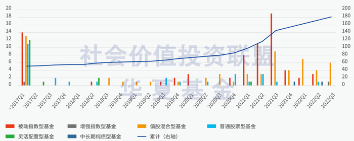 图表3 中国各类ESG主题基金数量变化(按基金类型分)