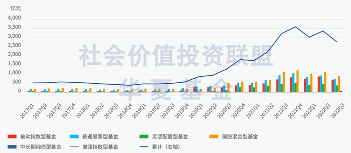 图表4 中国各类ESG主题基金总规模变化(按基金类型分)