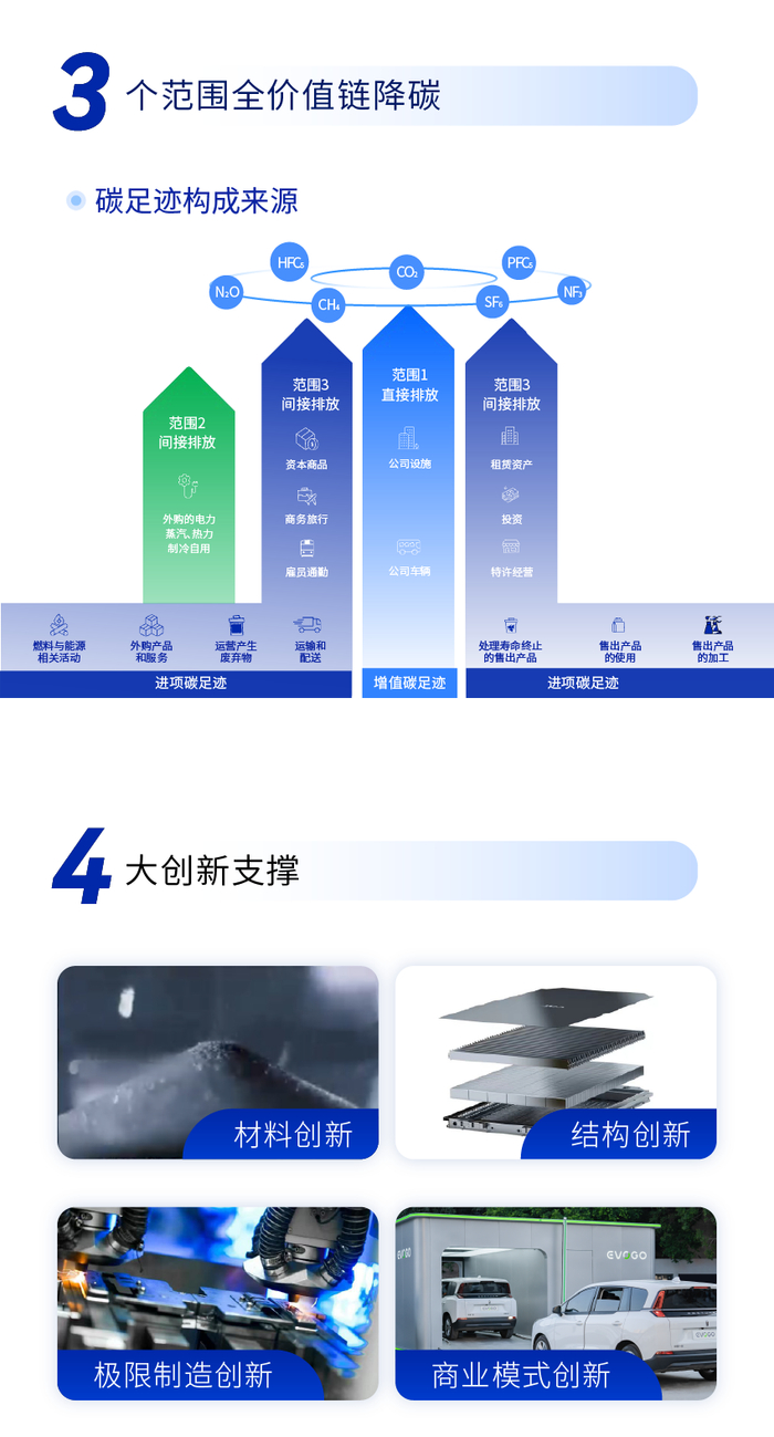 为了实现零碳战略,宁德时代将通过四大创新体系,在矿、大宗原材料、电池材料、电芯制造、电池系统五大关键节点实现技术降碳。