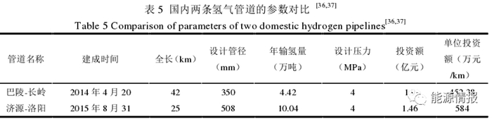 我国氢气管网发展不足,输氢管道主要分布在环渤海湾、长三角等地,目前已知最长的输氢管道为―巴陵-长岭‖输氢管道,全长约42km、压力为4MPa,其次是济源-洛阳输氢管道(25km),两者的技术参数如表5所示。目前全国累计仅有100公里输氢管道,氢气管网布局有较大提升空间。随着氢能产业的快速发展,日益增加的氢气需求量将推动我国氢气管网建设。国内氢气管网建设正在提速,根据《中国氢能产业基础设施发展蓝皮书(2016)》所制定的氢能产业基础设施发展路线,到2030年,我国燃料电池汽车将达200万辆,同时将建成3000km以上的氢气长输管道。该目标将有效推进我国氢气管道建设。
