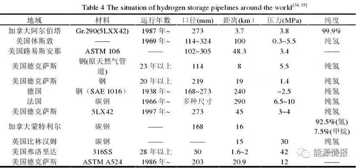 根据美国太平洋西北国家实验室(PacificNorthwestNationalLaboratory,PNNL)在2016年的统计数据,全球共有4542km的氢气管道,其中美国有2608km的输氢管道,欧洲有1598km的输氢管道。表4是世界各地储氢管道的情况。