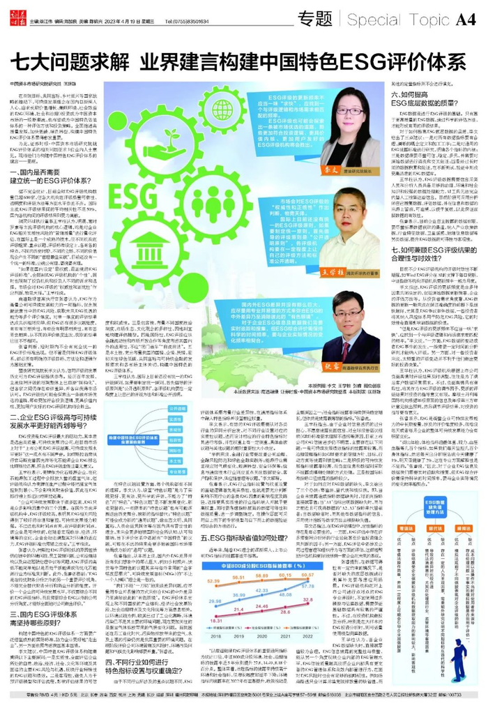 为此,证券时报·中国资本市场研究院就ESG评价体系的相关问题征求3位业内人士意见。现将他们为构建中国特色ESG评价体系的建言一一呈现。