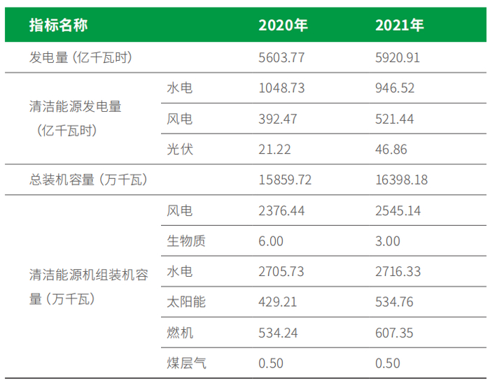 截至 2021 年底,大唐集团发电总装机 16398.18 万千瓦 ,其中清洁能源占比 39.1%;分布于全国 32 个省区市以及境外 13 个国家和地区, 占全国总装机规模的7%。2020年、2021年大唐集团的清洁能源装机及发电量情况如下表所示。