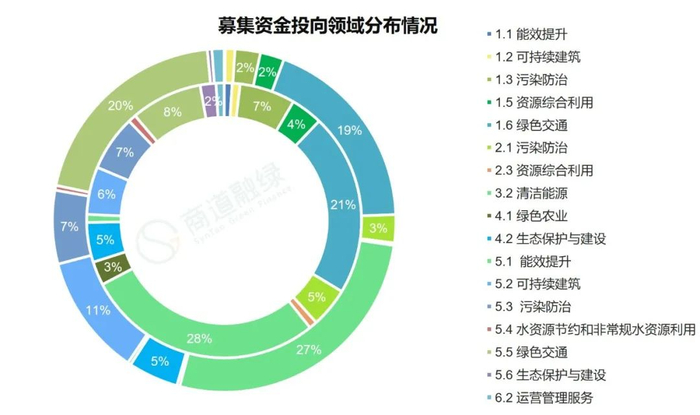 募集资金投向的领域方面,绿色交通领域规模占比最高