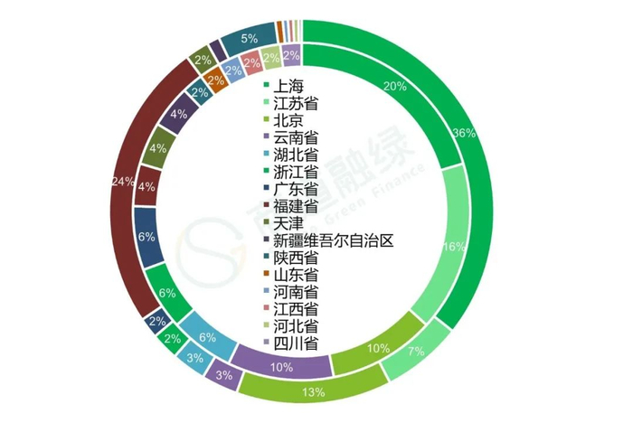 4月份境内新上市的49只绿债,共涉及44家发行人。发行人所在区域较为分散,共有16个省市自治区参与发行。数量上,上海市处于领先,本月上市10只,占比20.4%,江苏省上市8只,占比16.3%,北京市及云南省均上市5支,占比均为10.2%,其余各地占比均为超过10%。规模上,上海市占比35.7%,福建省占比24.3%,北京市占比13.1%,其他各地未超过10%。