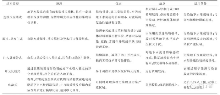 表1 PRB 结构类型、原理、优缺点及适用条件