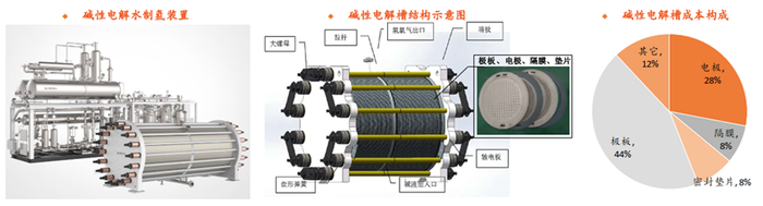 4.3 碱性电解槽:由电解小室堆叠而成,电极、隔膜和密封垫片是关键材料
