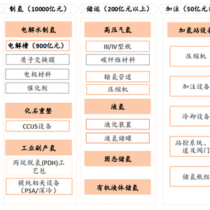 •提纯、碳捕集环节带来广阔的潜在设备需求。化石燃料制氢需经过提纯工序,方可在燃料电池中使用;制氢反应产生大量二氧化碳,需要结合CCUS(碳捕集、封存和利用)技术,以降低碳排放。提纯和碳捕集环节存在较为广阔的设备投资空间。