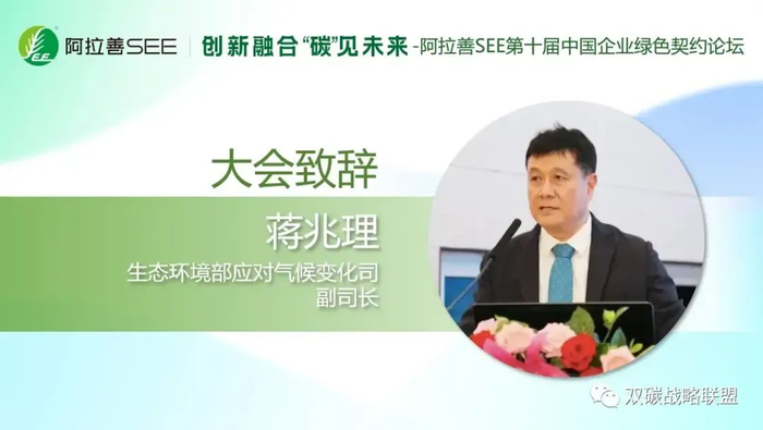 2023年“6·5世界环境日”,由阿拉善盟林业和草原局、阿拉善盟生态产业发展规划中心作为指导单位,阿拉善SEE生态协会、北京市企业家环保基金会联合主办的“第十届中国企业绿色契约论坛”线上举行,来自政府、行业专家、企业及社会组织代表等各界嘉宾,聚焦气候变化及企业绿色行动,共同探讨新形势下如何携手创造面向未来的绿色竞争力。生态环境部应对气候变化司副司长蒋兆理出席论坛并致辞。