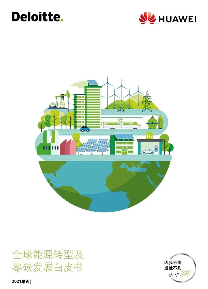 2021年华为与德勤(中国)联合编写《全球能源转型及零碳发展白皮书》,零碳智慧能源体系是未来能源发展的愿景,也是实现全球气候目标、维护世界能源安全、促进经济增长的核心动力。该白皮书以未来能源规划的形式,明晰零碳智慧能 源体系的目标、蓝图、特征、核心能力和发展路径。