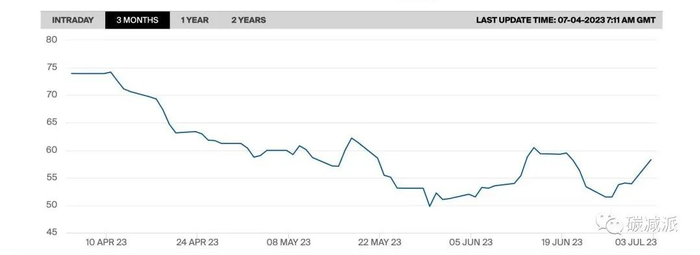 英国排放交易体系管理局表示,明年生效的新配额上限将设定在8.87亿至9.97亿之间的较高水平,这是去年一次咨询中提出的上限,比目前的13.67亿大幅下降,受该消息影响,近期英国UKA期货行情上涨明显。