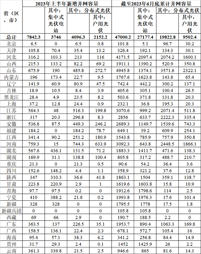 3.2023年上半年部分省(自治区、直辖市)装机有退运减容,截至2022年底累计并网容量按当年净增并网容量统计。