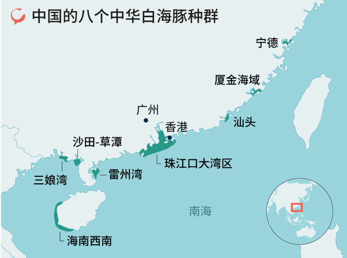 珠江口的中华白海豚,数量正以每年2.5%的速率减少,而汕头小种群在过去10年减少了38%,三娘湾小种群过去5年减少了35%。