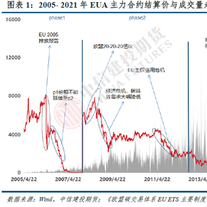 Phase1和Phase2期间,碳配额在各成员国间以国家分配计划(NAPs)形式完成初次分配,NAPs分配制度下,成员国为降低碳排放限制对自身经济发展的负面影响,有充分的动力高估自身产能,虚报高报碳排放需求量。因此在缺乏权威核准的NAPs制度下,碳配额长期供大于求,有天然的贬值倾向。2006年欧盟《2005年排放报告》指出EUA存在相对过剩,价格跳水。2006年下半年,欧盟明确第一阶段剩余的碳配额不能顺延至第二阶段使用,12月EUA期货合约价格持续下跌,随Phase1截止日的临近,Phase1期间剩余的EUA价格一度触零。