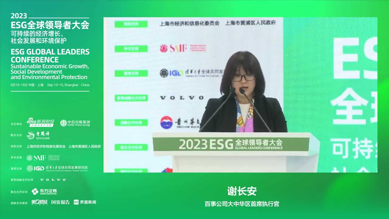 百事公司大中华区首席执行官谢长安出席大会并表示,每个企业和个体都有责任积极参与ESG的建设,共同应对,为实现可持续和高质量发展努力。