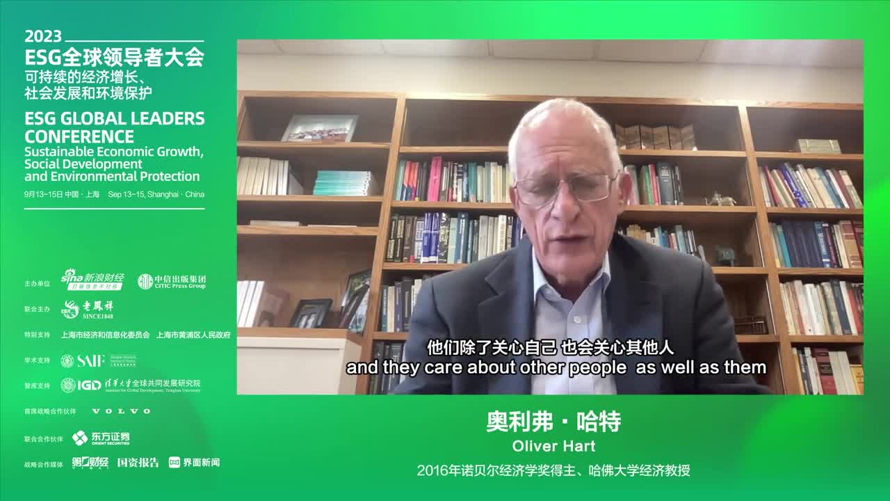 2016年诺贝尔经济学奖得主、哈佛大学经济学教授-奥利弗·哈特 -2023ESG全球领导者大会