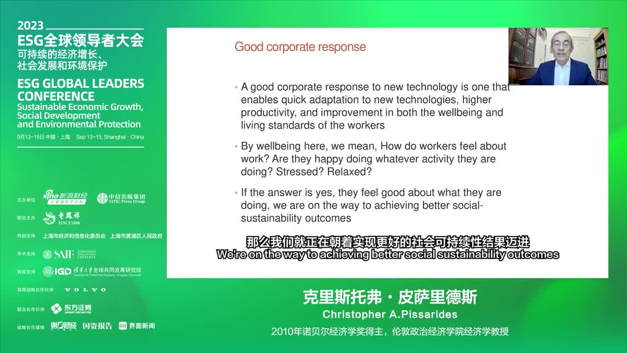 2010 年诺贝尔经济学奖得主-克里斯托弗·皮萨里德斯-2023ESG全球领导者大会