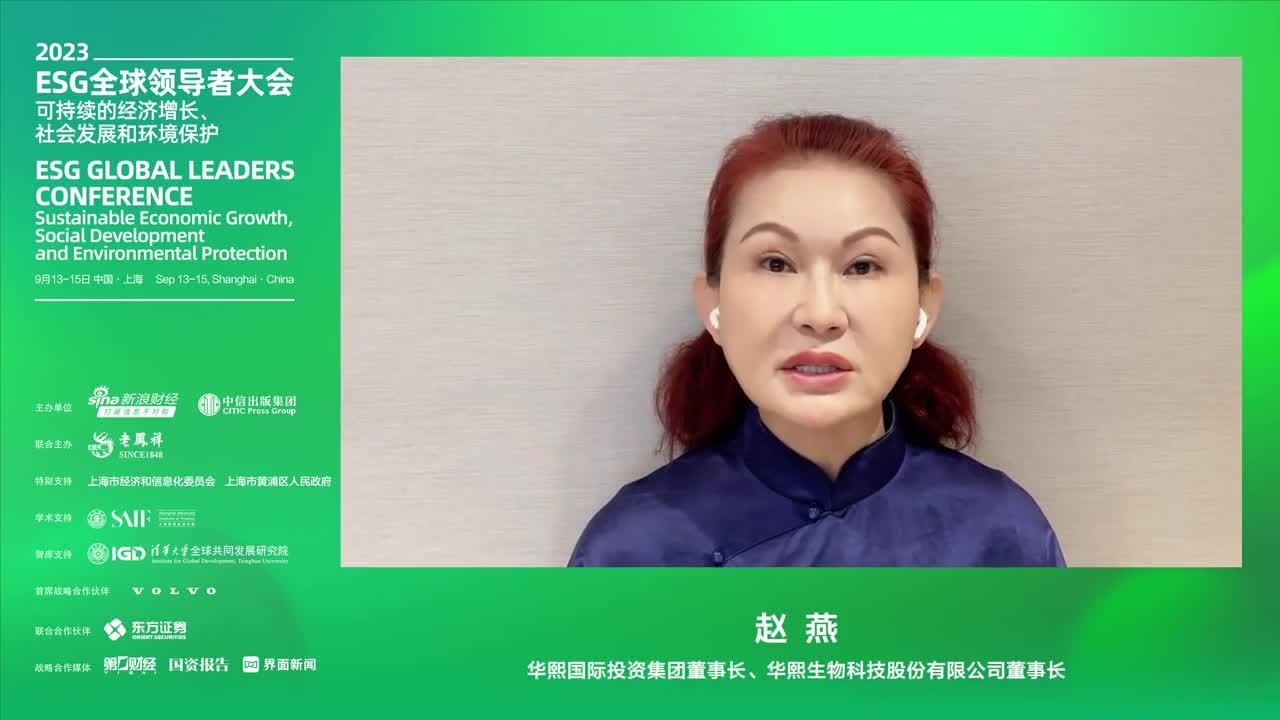 大家好,我是华熙生物的董事长赵燕,今天非常高兴能够在这个大会上,代表企业来做一个ESG的发言,也非常遗憾,这次因为在国外出差,不能现场赶来参加这个会议。所以,只能以视频的方式来发言。我们作为一家生物科技企业,尤其是以合成生物驱动的生物高科技企业,我们是做生物材料的一家全平台公司,因为现在生物制造是今后绿色制造的一个核心的基础保证。