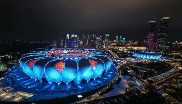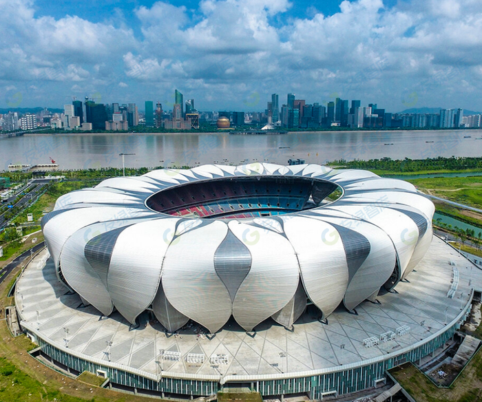 被大家亲切称为“大莲花”的杭州2022年亚运会主会场“杭州奥体中心体育场”,不仅是杭州2022年亚运会开、闭幕式的举办场馆,也是田径项目的举办地。该建筑由28片大花瓣和27片小花瓣构成莲花外形,整座建筑虽为钢结构,却飘逸灵动。“大莲花”总用钢量经过多轮优化、完善后仅为2.8万吨,获得全国钢结构工程最高荣誉——“中国钢结构金奖”。2021年3月,“大莲花”主体育场获得建筑最高荣誉中国建设工程鲁班奖。