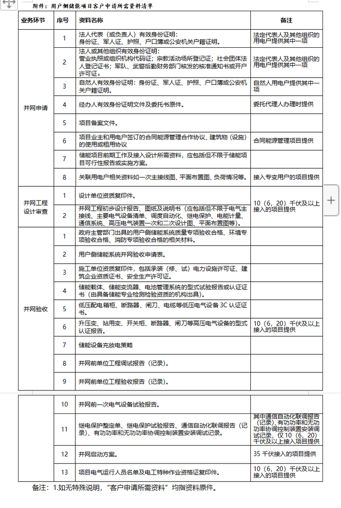 用户侧储能并网服务流程及资料清单
