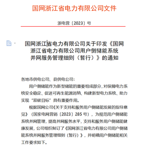 近日,有公众号发布《国网浙江省电力有限公司用户侧储能系统并网服务管理细则(暂行)》(以下简称《细则》)。