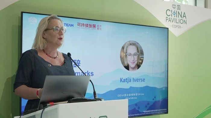联合国博物馆UN Live首席执行官Katja Iversen向大家发出三点号召,一是要勇敢承担起领导力的角色,二是创新和参与,成为气候治理创新的催化剂,三是通过流行文化和艺术的力量激励他人拥抱可持续发展。