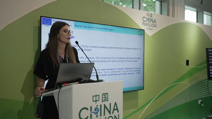 互满爱人与人国际运动联合会欧洲中心政策与机构事务主管Ana Ramos分享了他们在云南省低碳学校试点项目, 以此打造中国气候变化教育典范。她说:“我们面对的问题是人们对气候变化的认识和理解总体上还相当有限,而且目前还没有针对所有年龄段的通用气候变化课程。因此,创建成功的气候变化应对教育范例可以给教育当局带来启发并产生巨大的影响。”他们的项目包括:在学校建立了125个气候合规学生俱乐部,成立了10个大学生排放调查小组,开发并教授了10节课的互动课程,并在109个不同年龄段的示范班中进行了601次互动性讲座的试点。他们根据项目经验制作了一套气候变化教育工具包,包括学生俱乐部活动包、在线课程、科普视频以及个人碳足迹计算小程序等。该项目的受益群体覆盖846所学校,参与人数超过线下25万人次和450万线上人次。