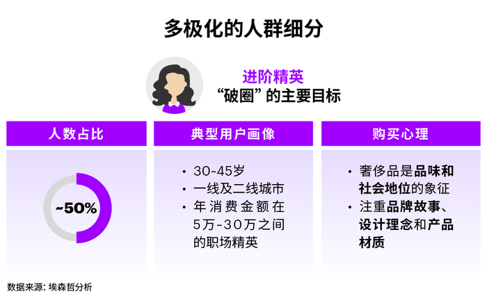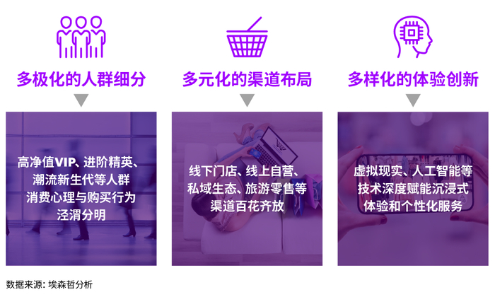 埃森哲认为,中国高端奢侈品行业在人群细分、渠道布局和体验创新三个领域分别呈现出多极化、多元化和多样化的趋势。