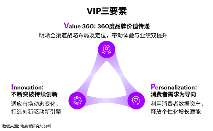 面对多极化的消费者群体、多元化的销售渠道和多样化的体验创新,埃森哲建议奢侈品品牌从VIP三大价值主张入手,制定更加灵活多变的策略。
