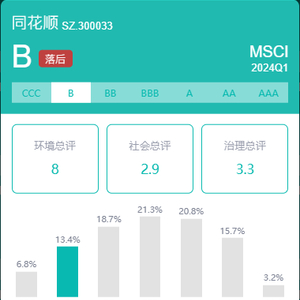 近日,MSCI发布了ESG评级。同花顺评级为B,行业排名落后。