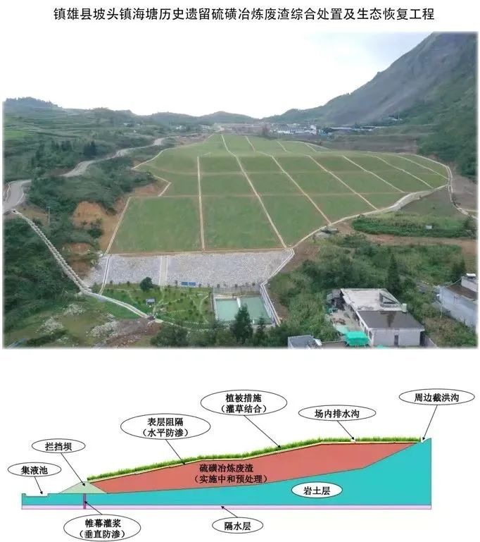 本项目采用“防渗风险管控+绿色生态恢复”方式对无序堆积40多年的258万t土法冶炼废渣进行原位封存后生态修复,是云南省打造“长江上游最美生态河流、践行‘两山’理念样板典范、流域绿色高质量发展先行示范区”具体行动——赤水河流域生态治理“九大攻坚行动”清单项目之一。